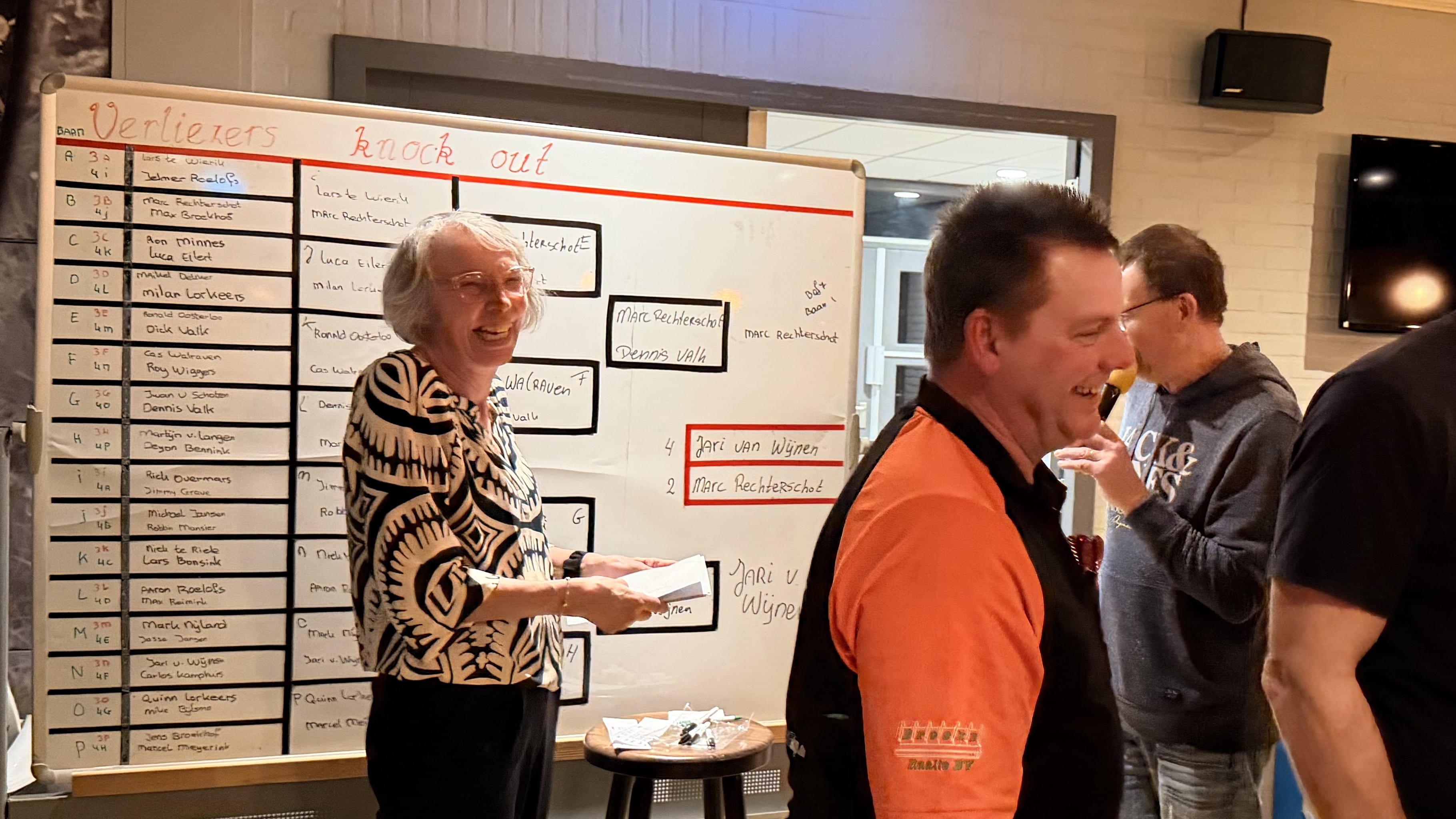 Na zinderende wedstrijden in de knockoutfase ging het in de verliezersfinale tussen Marc Rechterschot uit Schoonheeten en Jari van Wijnen uit Wijhe. Het ging nog even gelijk op, maar uiteindelijk won Jari die finale met 4-2.